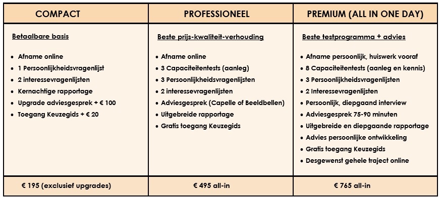 Overzicht beroepskeuzetests tarieven ACP beroepentest